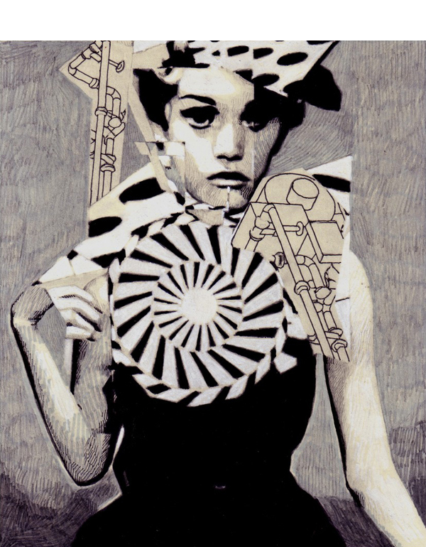 Tone of voice: Much of Anna Higgie's work focuses on themes of femininity, fashion and beauty that becomes abstracted by colliding shapes that replace sections of the body, restricted to a minimised palette.